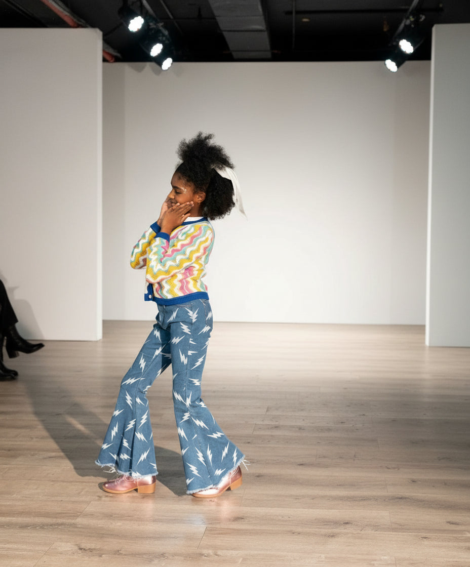 The soft, flexible denim allows for easy movement — perfect for school days, photoshoots, or stealing the runway like she did at our From Pages to Pieces debut fashion show!